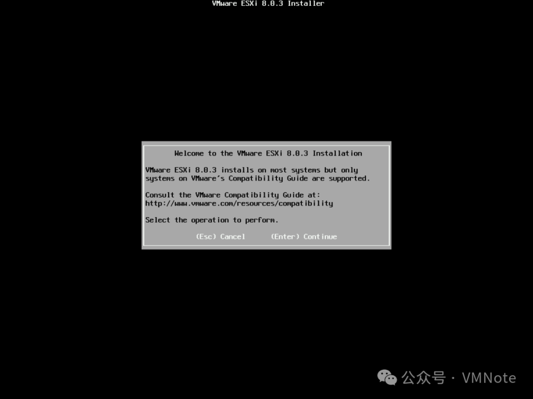 第6步,ESXi系统安装文件加载完成后,在弹出的安装的界面,按 Enter 键 开始安装