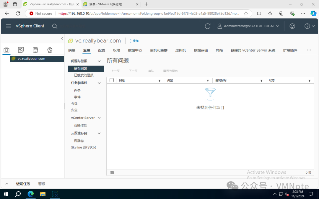 第3步,访问现有vCenter Server 的客户端(vSphere Client)以及 vCenter Server 管理界面(VAMI,vCenter Server Applicance Management),对现有的 vCenter Server 7的健康状态进行检查,确保没有任何警告或报错。若存在警报或者错误情况,必须先解决这些警报或错误后才能进行升级操作。