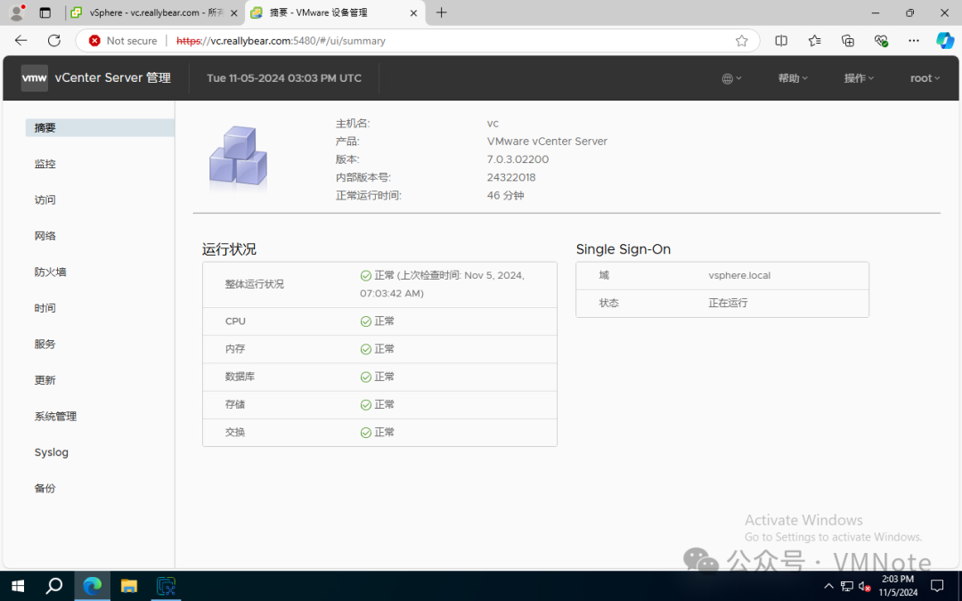 第9步,访问vCenter Server的域名或IP地址,并根据提示登录后,确认vCenter Server升级成功。