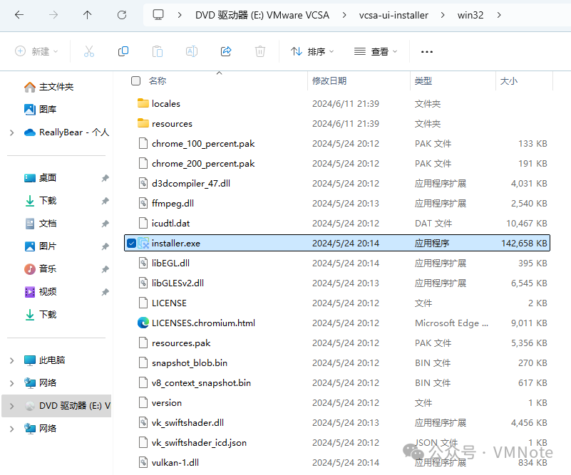 第1步,在个人电脑上将下载好的VMware vCenter Server Appliance(VCSA)的ISO文件用虚拟光驱挂载或者解压第2步,找到VMware VCSA/vcsa-ui-installer/win32文件夹下的intaller.exe文件,双击运行