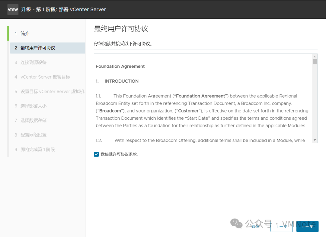第6步,在 最终用户许可协议 页面,阅读最终用户许可协议,然后 勾选 我接受协议条款复选框,并点击 下一步