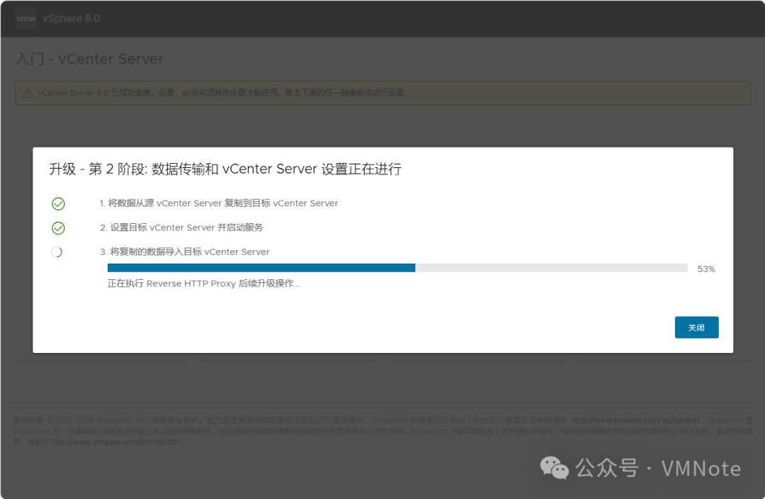 第8步,第2阶段升级中,升级完毕后点击 关闭