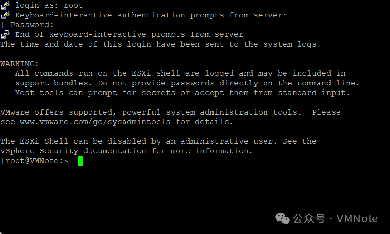 第2步,访问VMware ESXi的命令,具体步骤参考:《如何访问VMware ESXi的本地命令行(Shell)》或《如何开启VMware ESXi的SSH和Shell服务》