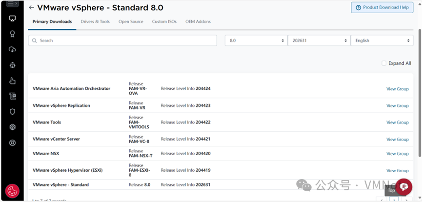 第3步,在我的下载页面的右上方输入vSphere 关键字,然后找到VMware vSphere