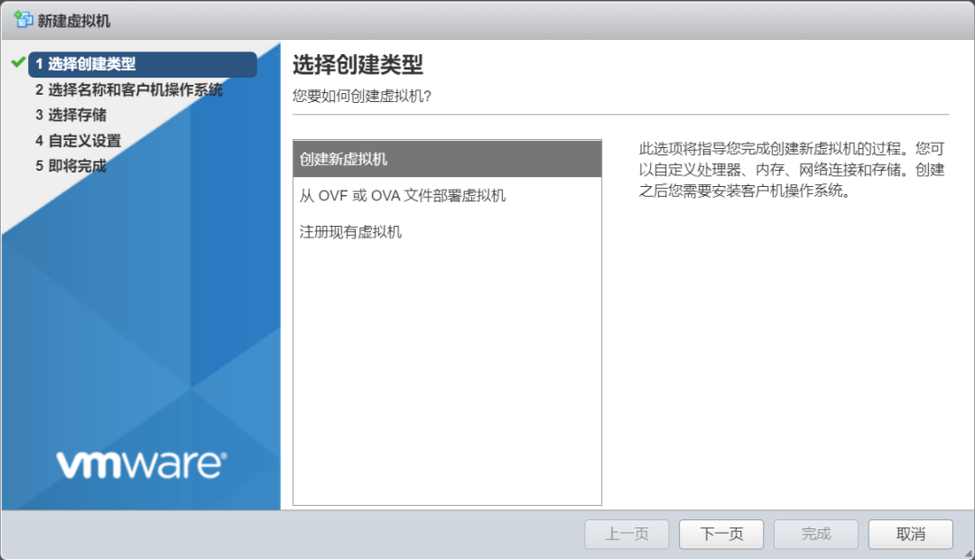 第4步,在选择创建类型页面,选择 创建新虚拟机