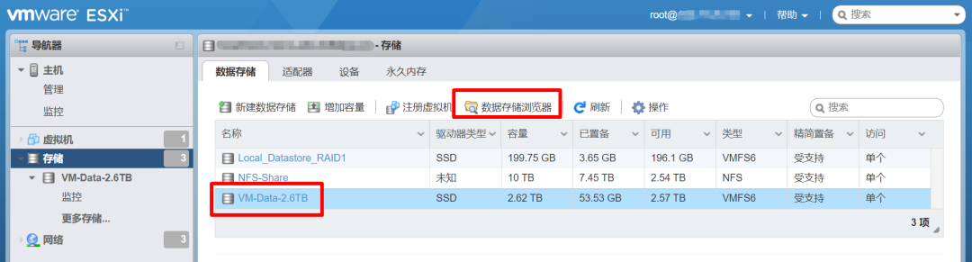 第14步,打开虚拟机所在数据存储(datastore)的数据存储浏览器