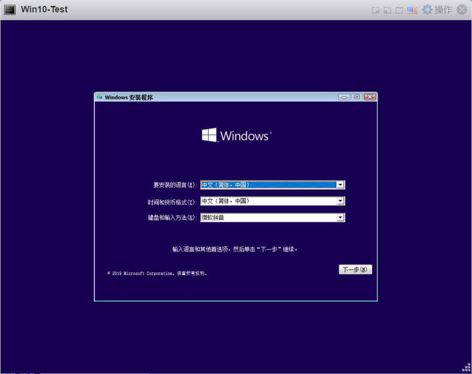 第3步,在弹出的虚拟机窗口,根据操作系统向导提示开始安装操作系统,整个过程和物理机安装步骤一样,此处省略