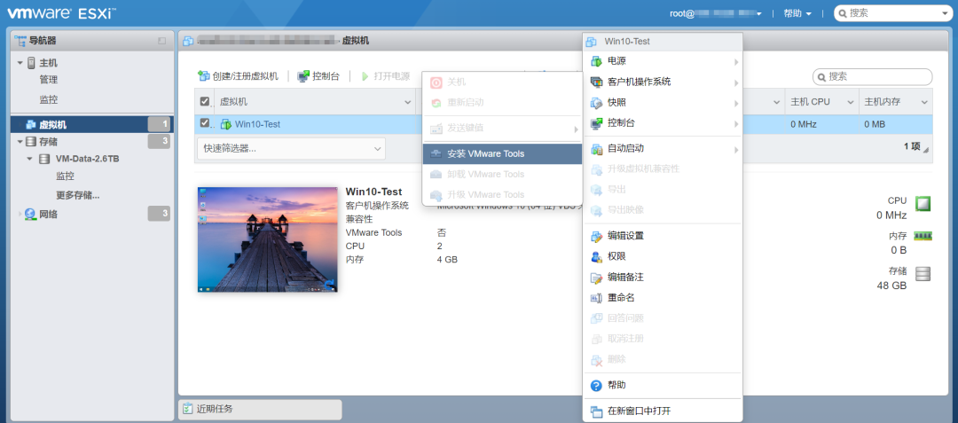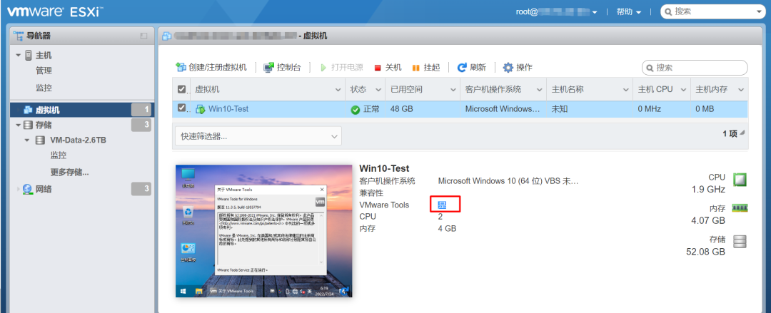 第5步,在ESXi主机客户端界面,确认VMware Tools已经安装成功