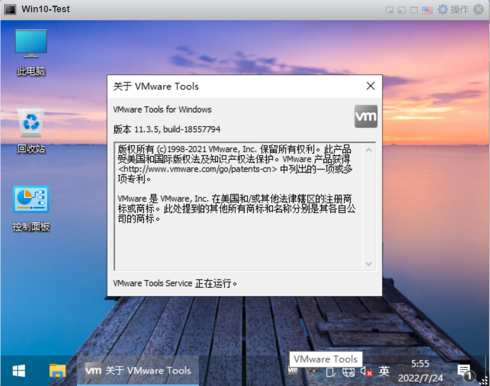 第4步,安装完毕后根据提示重启后,确认VMware Tools已经在正常运行