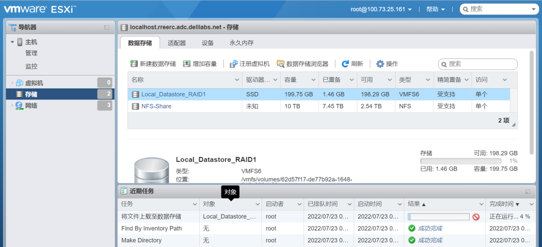 第7步,在ESXi主机客户端的近期任务页面查看上传进度