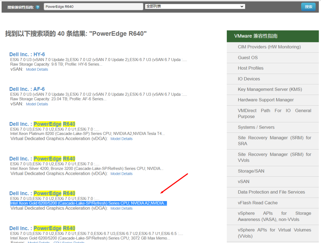 (2)检查服务器型号支持的VMware ESXi 版本