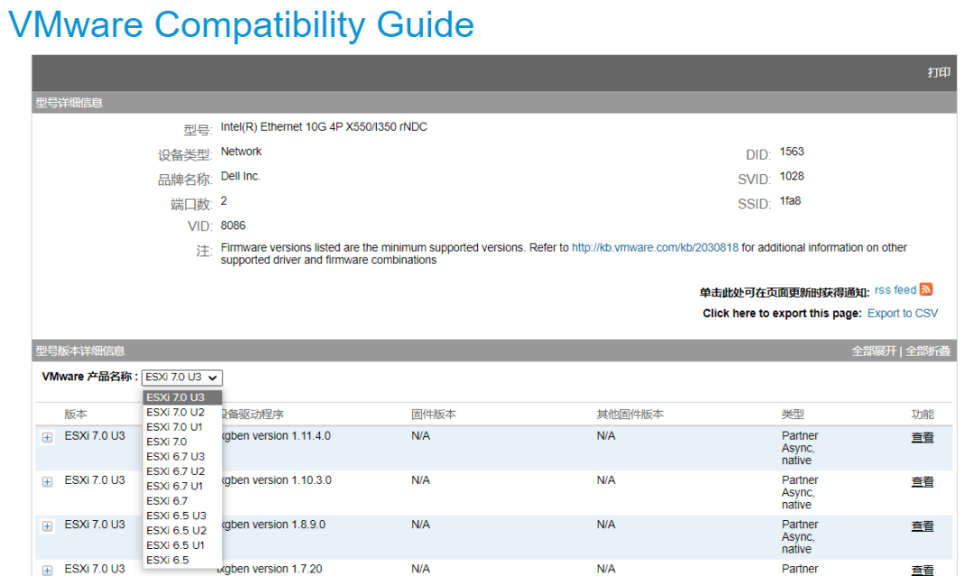 注:驱动版本在ISO下载页面可以查询到,详见《如何下载服务器产商客制化(OEM)版本的VMware ESXi 安装包》