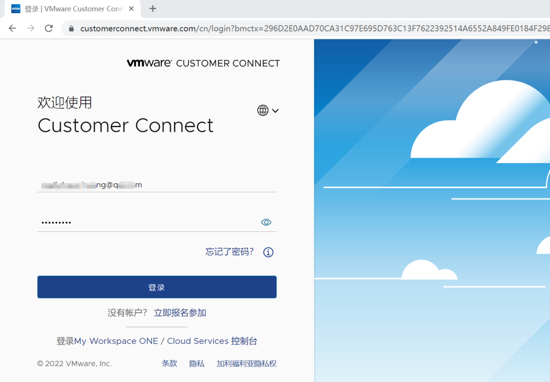 如果还没有VMware账户,请参考《如何注册VMware 账户》进行注册