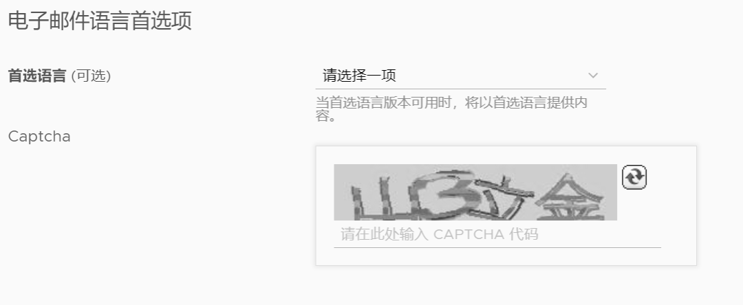 第5步,(可选)选择电子邮件的首选语言并输入验证码