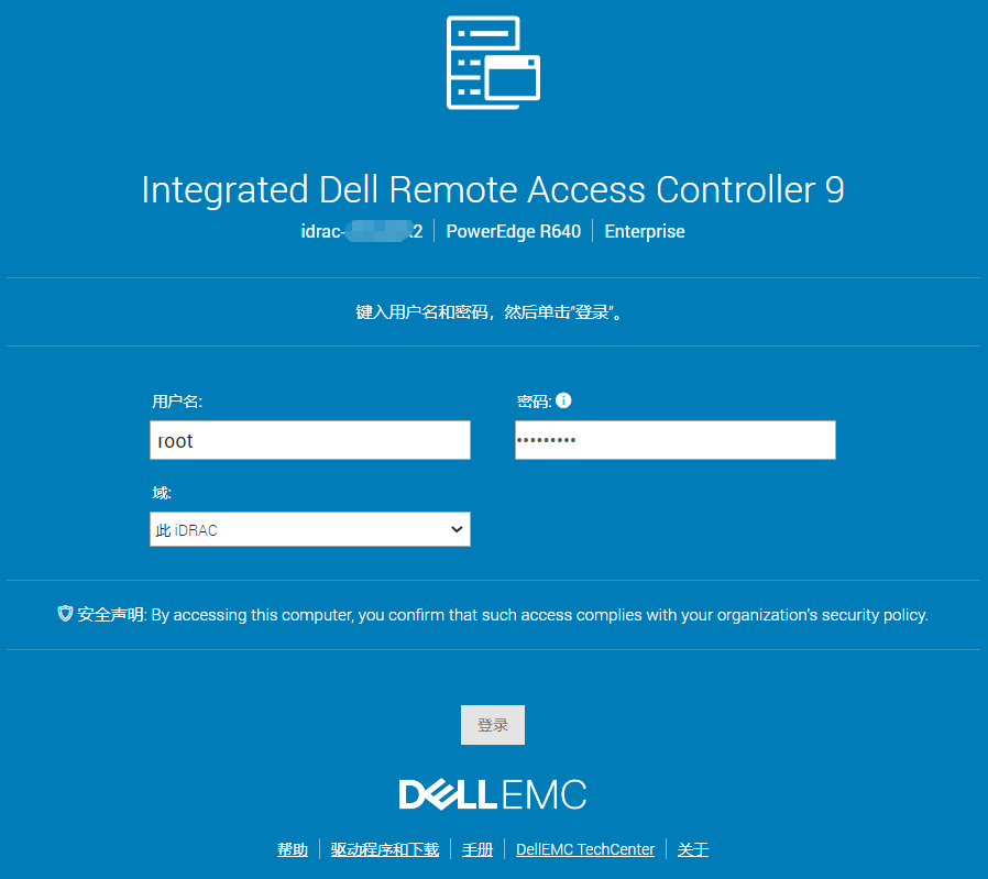第1步,登录iDRAC ,如果还未配置iDRAC 请先配置下iDRAC,具体步骤参考:《如何配置戴尔服务器iDRAC9的IP地址和账户密码》