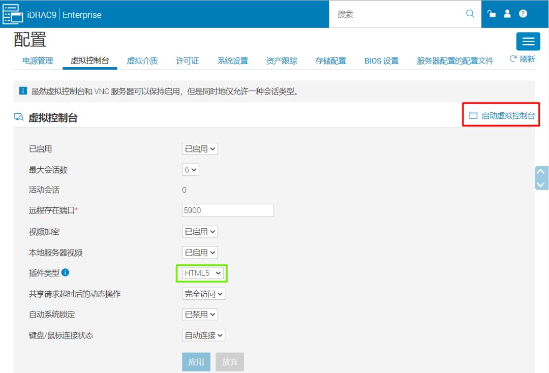 第3步,在虚拟控制台设置页面,确认插件类型为 HTML5 后,点击右上角的 启动虚拟控制台