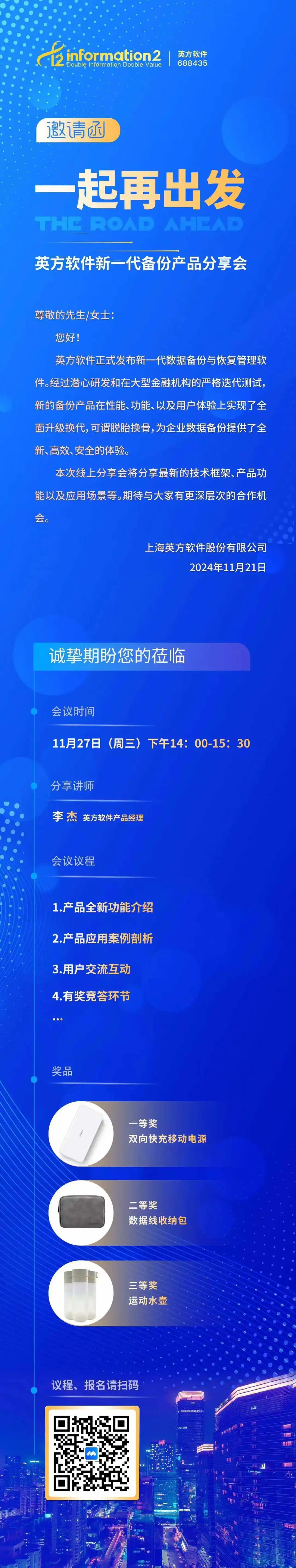 英方软件是一家专注于数据复制的基础软件企业(股票代码:688435),致力于动态文件字节级复制、数据库语义级复制、卷层块级复制及其他信息化技术的研发与推广。产品广泛应用于灾备、数据保护、云数据管理等领域,帮助各类用户打破数据孤岛,实现数据互联互通,为数字经济的发展保驾护航。2023年公司成功登陆上交所科创板。