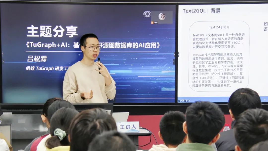 分享结束后,嘉宾们与参会学生积极互动,就模型的构建细节、数据处理方法、赛事具体内容与规则等问题展开了进一步交流。在交流中,能够感受到同学们对AI的关注度依然很高,尤其对图+AI相关的话题讨论表现出浓厚的兴趣。此外,同学也表示希望系统地学习图数据库的相关知识,期待更多参与CCF BDCI等比赛活动,也期待社区能够提供更多系统性的比赛或教程支持。