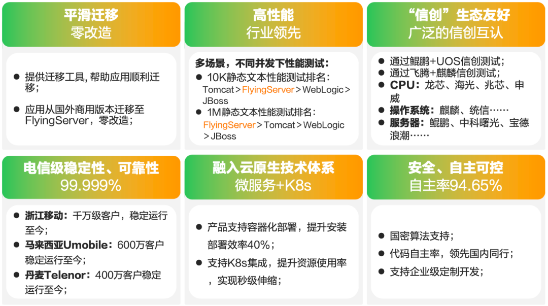 1 功能全面、性能优异:AntDB作为性能优异的分布式关系型数据库,高度兼容国际主流数据库产品;适用于交易、分析、内存计算、流处理、时序、向量等六大类业务场景;采用超融合架构,跨业务数据融合处理能力强。FlyingServer中间件符合Jakarta EE和MicroProfile等国际标准,能够承载各种J2EE应用,支持多种部署方式,满足各行业不同场景需要。