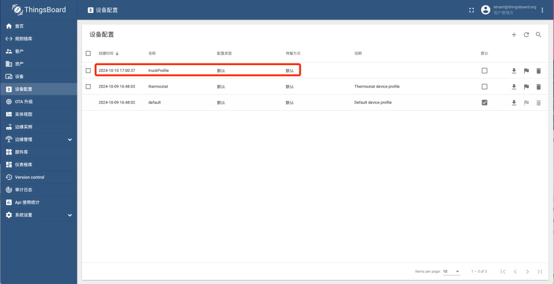 curl -X POST 'http://127.0.0.1:8080/api/deviceProfile' \--header 'Content-Type: application/json' \--header 'Authorization: Bearer $YOUR_JWT_TOKEN_HERE' \--data-raw '{"name": "truck","type": "DEFAULT","image": null,"defaultQueueName": null,"transportType": "DEFAULT","provisionType": "DISABLED","description": "","profileData": {"configuration": {"type": "DEFAULT"},"transportConfiguration": {"type": "DEFAULT"},"alarms": null,"provisionConfiguration": {"type": "DISABLED"}},"tableInfo": {"columns": [{"name":"longtitude","type":"double","len":10},{"name":"latitude","type":"double"},{"name":"speed","type":"float"}],"tags": [{"name":"license_plate_number","type":"nchar","len":8}]}}'