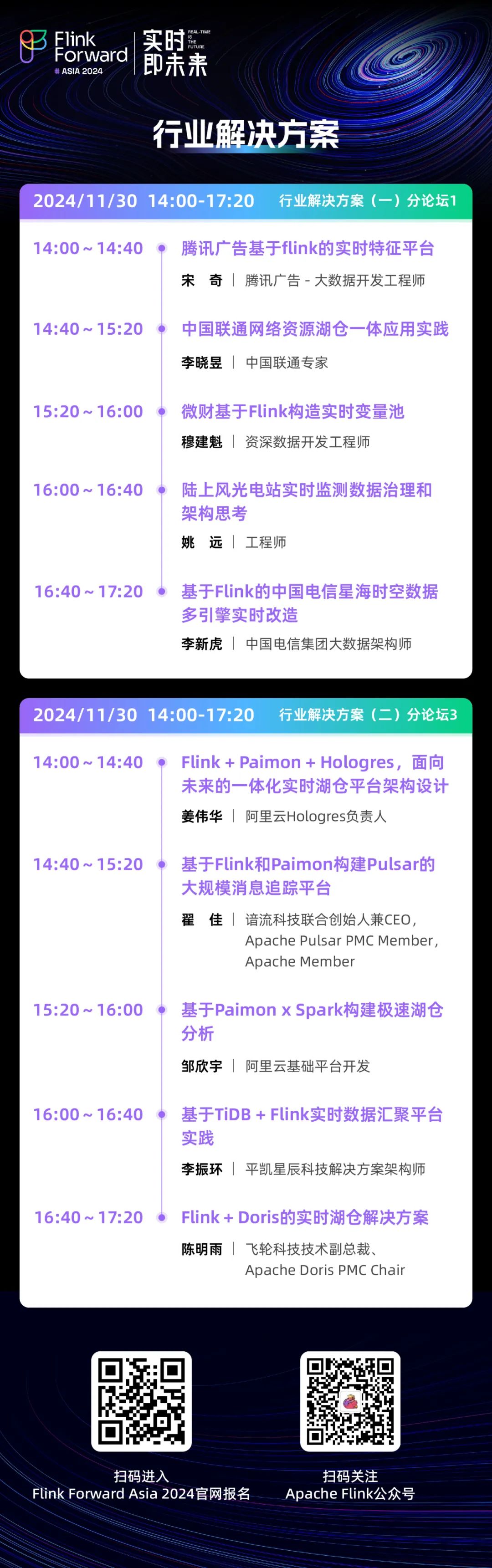 FFA2024行业解决方案专场由 Apache Flink 核心贡献者与来自中国联通、阿里云、腾讯、中国电信、微财、谙流科技、平凯星辰、飞轮科技等公司的一线技术专家带来分享,探讨Apache Flink在关键行业场景中落地的实时数据驱动决策和分析的方案,通过这些案例,一起解析技术挑战,分享业务成果,促进实时数据处理技术的创新与发展。