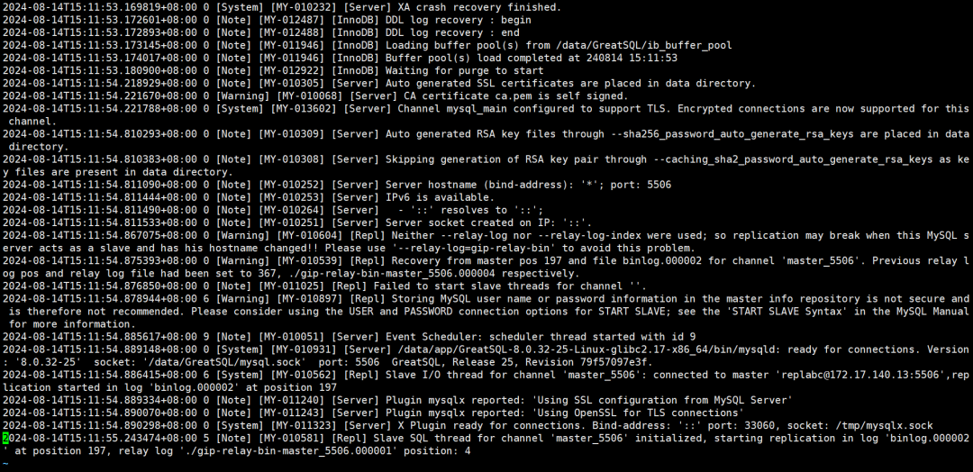 $ /data/app/GreatSQL-8.0.32-25-Linux-glibc2.17-x86_64/bin/mysqld_safe --defaults-file=/data/my5506.cnf --user=greatdb &