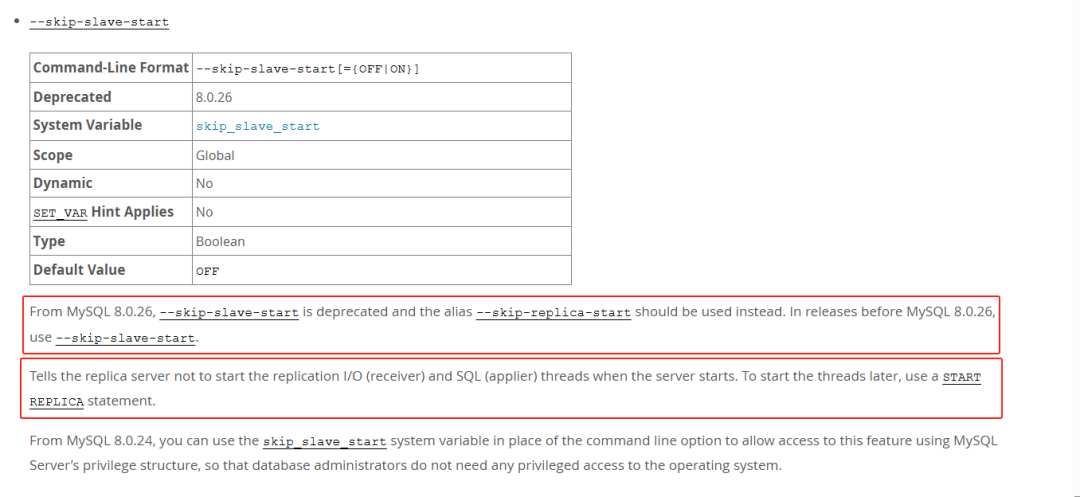 从MySQL 8.0.26 开始使用 --skip-replica-start