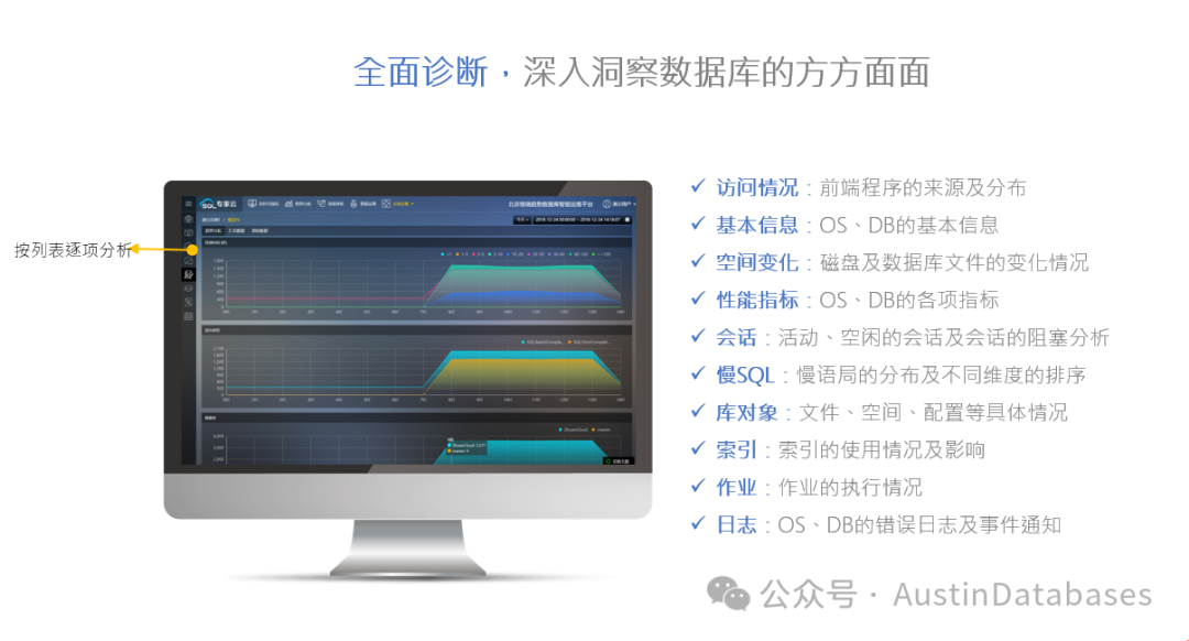 王老师:没事,现在做运维维保和以前不一样了,我们做数据库运维都是自动化了。我们有一个自己的系统,叫SQL云专家,直接接入到贵司的数据库服务器中,自动进行数据的收集,故障预警,故障诊断,故障告警,故障记录,故障分析,故障总结。实际上已经90%的维保工作已经都自动化了。基本上看系统的故障分析和告警就能解决问题了。