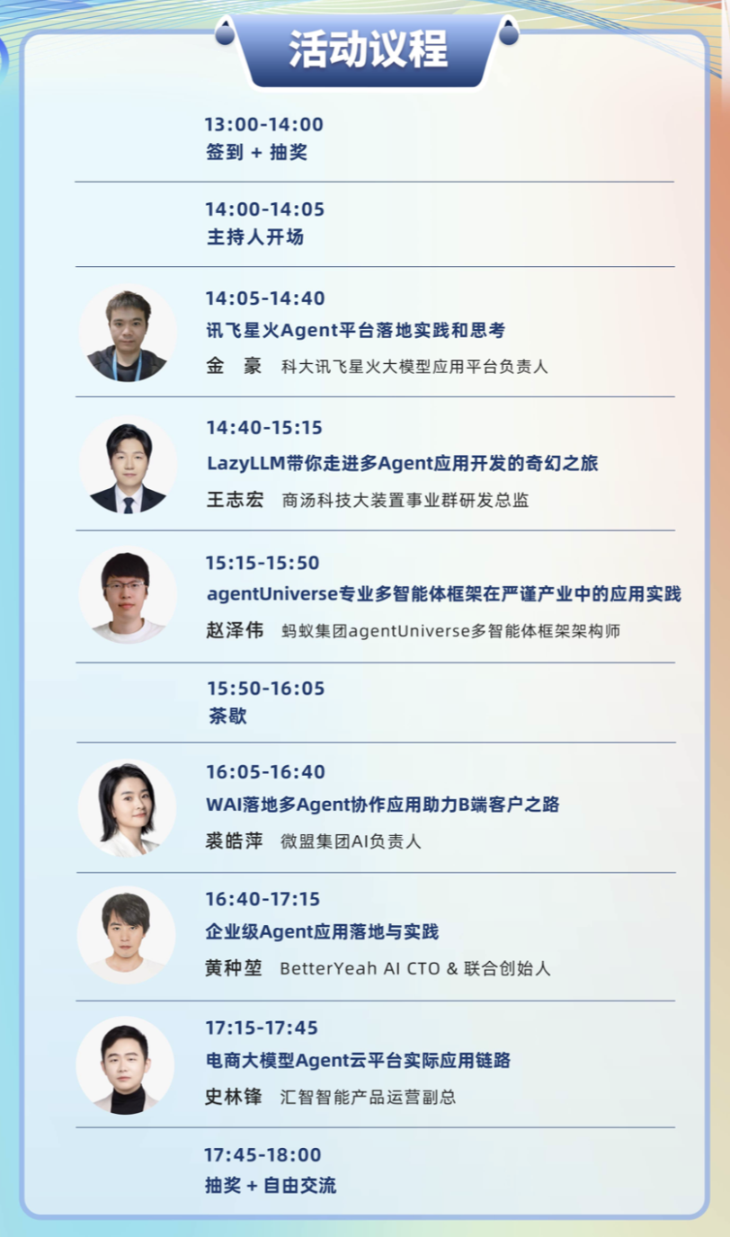 本次技术沙龙以“AI Agent构建与应用”为主题,旨在为广大技术爱好者、研究者及企业提供一个探讨、交流的平台。