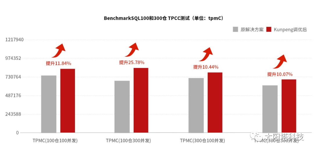 此次联合鲲鹏生态创新中心深度优化后,LNXDB-RDS使用鲲鹏应用使能套件BoostKit对平台进行全栈调优,在BenchmarkSQL 100和300仓TPCC测试场景下,TPMC在100仓300并发条件下性能提升25.78%,整体较业界主流方案均有较大幅度提升,为金融、交通等行业的大并发,大数据量场景提供了更好的服务能力。