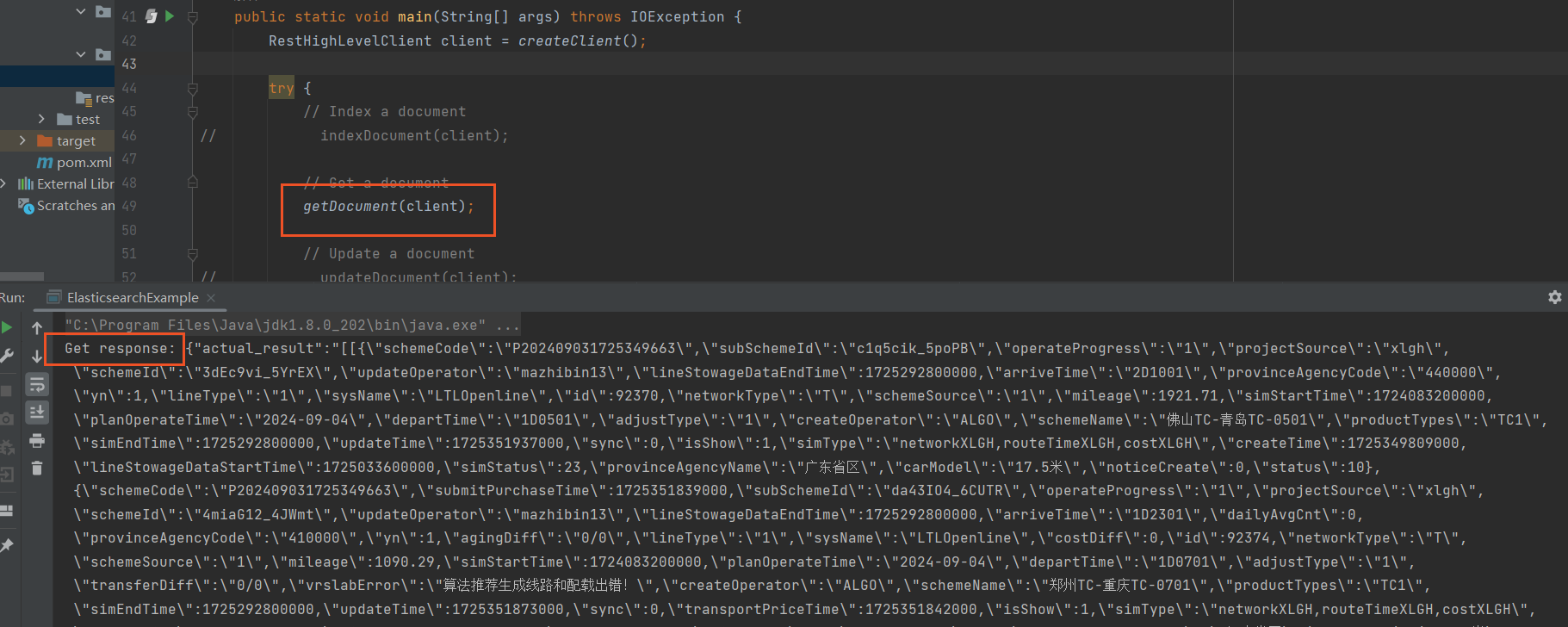 System.out.println("Get response: " + getResponse.getSourceAsString());