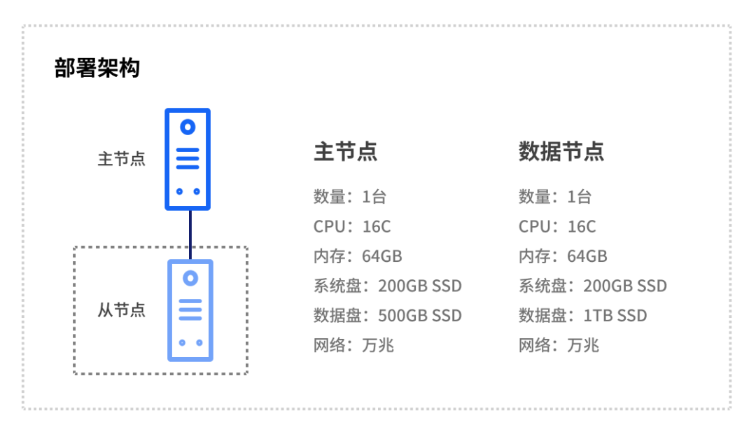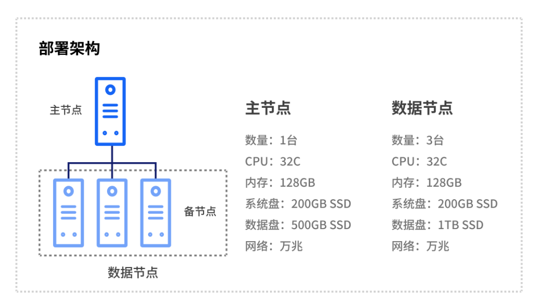 从业务数据增长测算,每年预估容量 256GB,三年为 768GB;按 50% 系统空间利用率计算,则需要空间 1.5TB;根据数据安全规则存储一个副本,因此需要容量 3TB,可保障未来 3~5 年的业务使用。