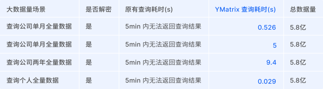 性能分析 现有业务库采用 MySQL,1600 万的数据查询用时 72s,按该性能评估,单月 2000 万薪酬数据的查询需要 1min30s 以上,通过分表优化后,性能得到部分提升,但仍无法支持未来灵活查询报表的性能要求。