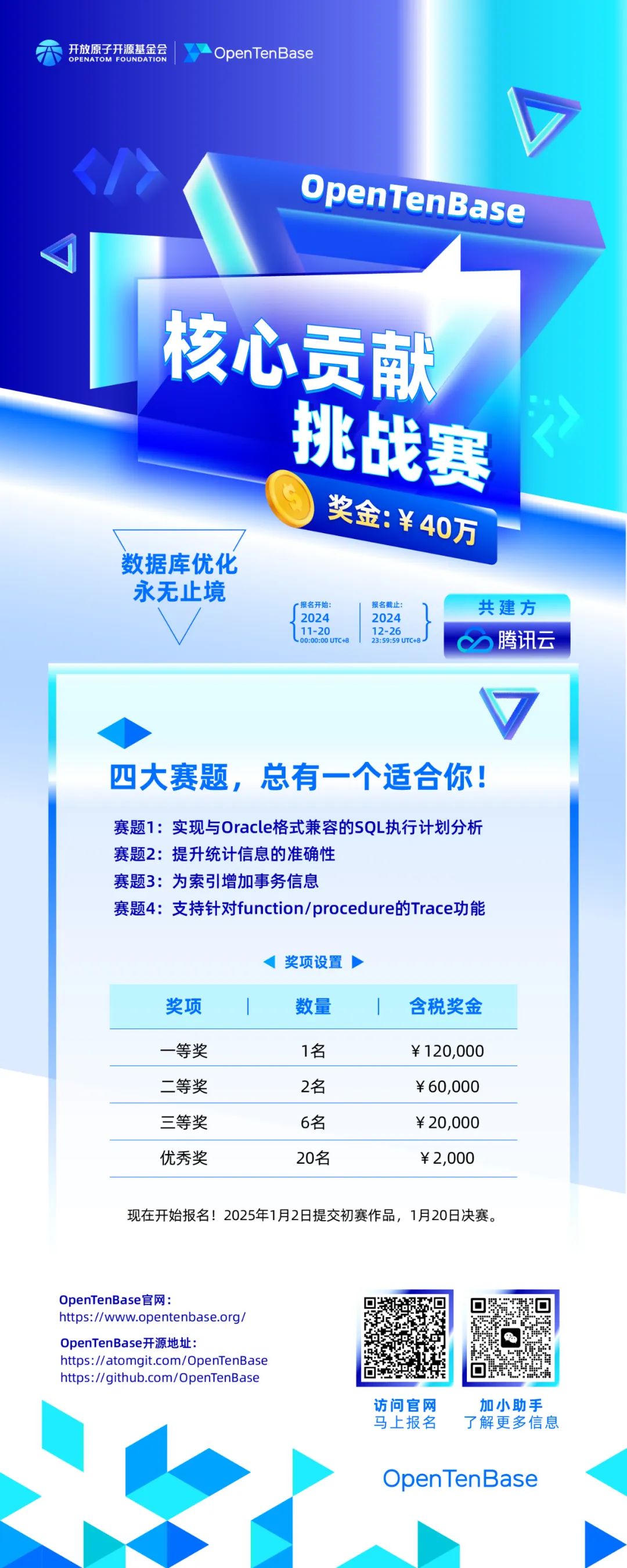 OpenTenBase核心贡献挑战赛 —— 深入数据库核心,展现你的技术实力。