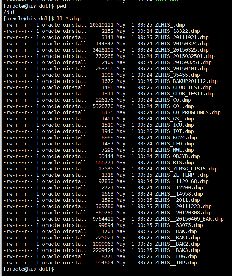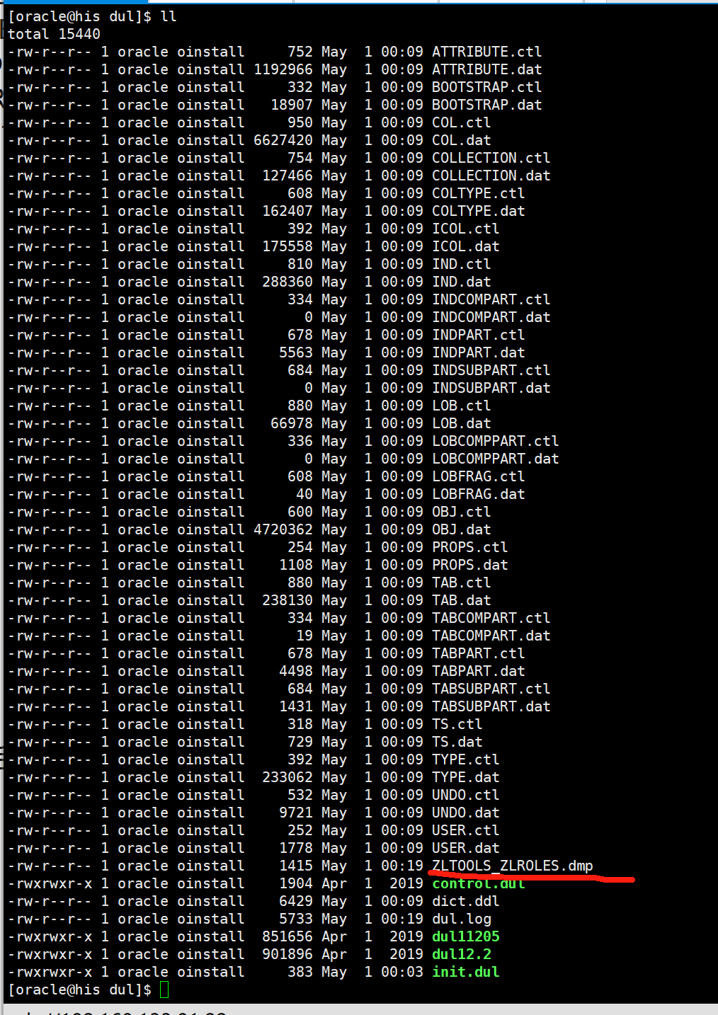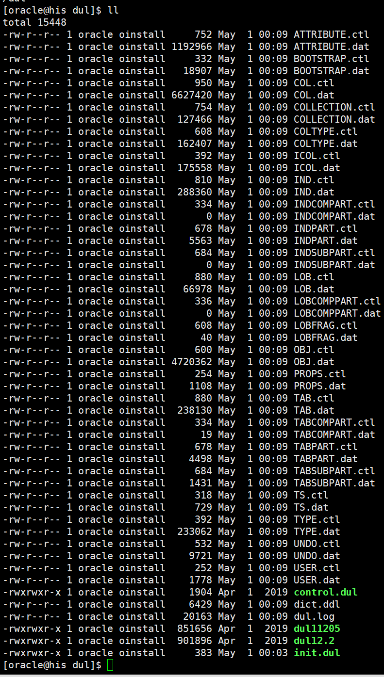 -rw-r--r-- 1 oracle oinstall 20163 May 1 00:09 dul.log --dul允许过程中的日志