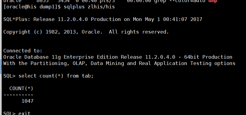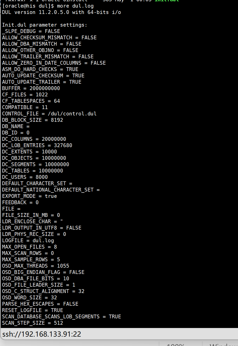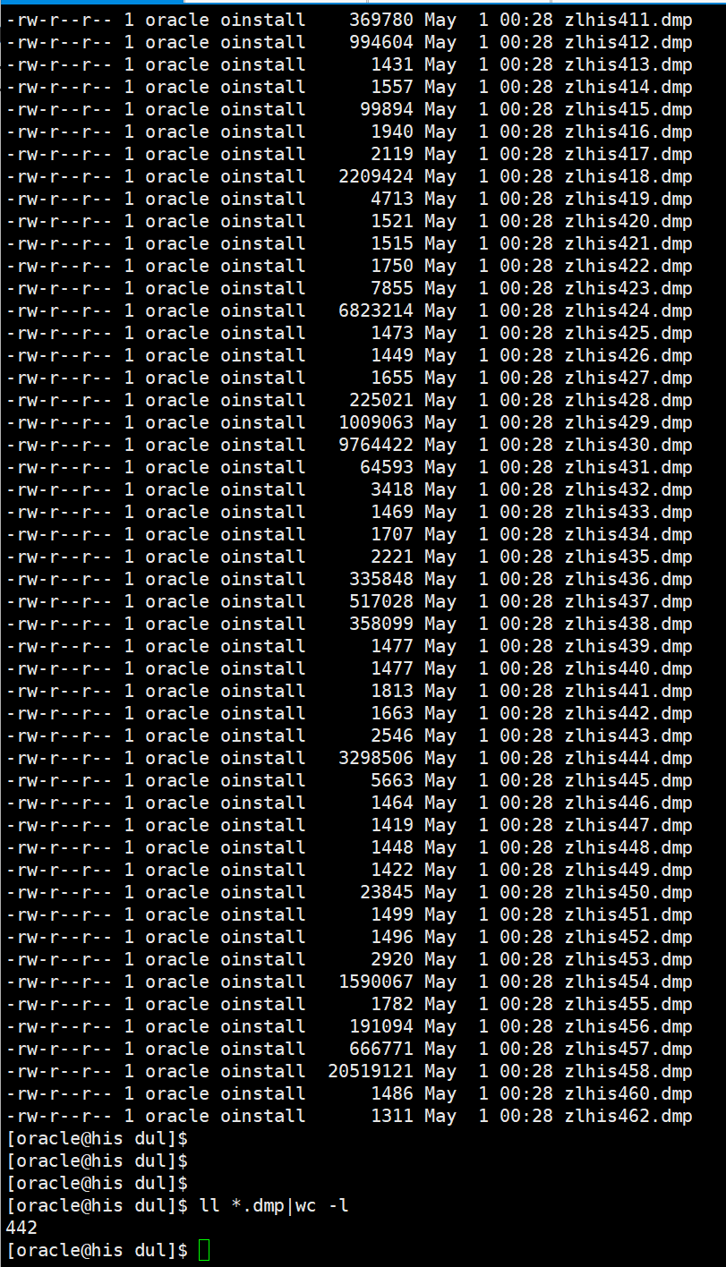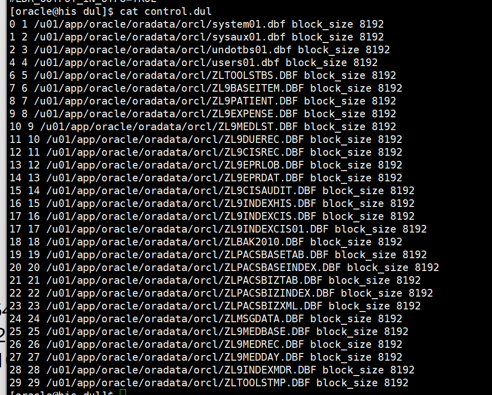 -rw-r--r-- 1 oracle oinstall 20163 May 1 00:09 dul.log --dul允许过程中的日志