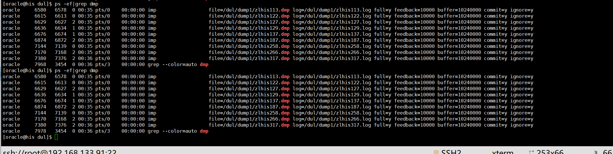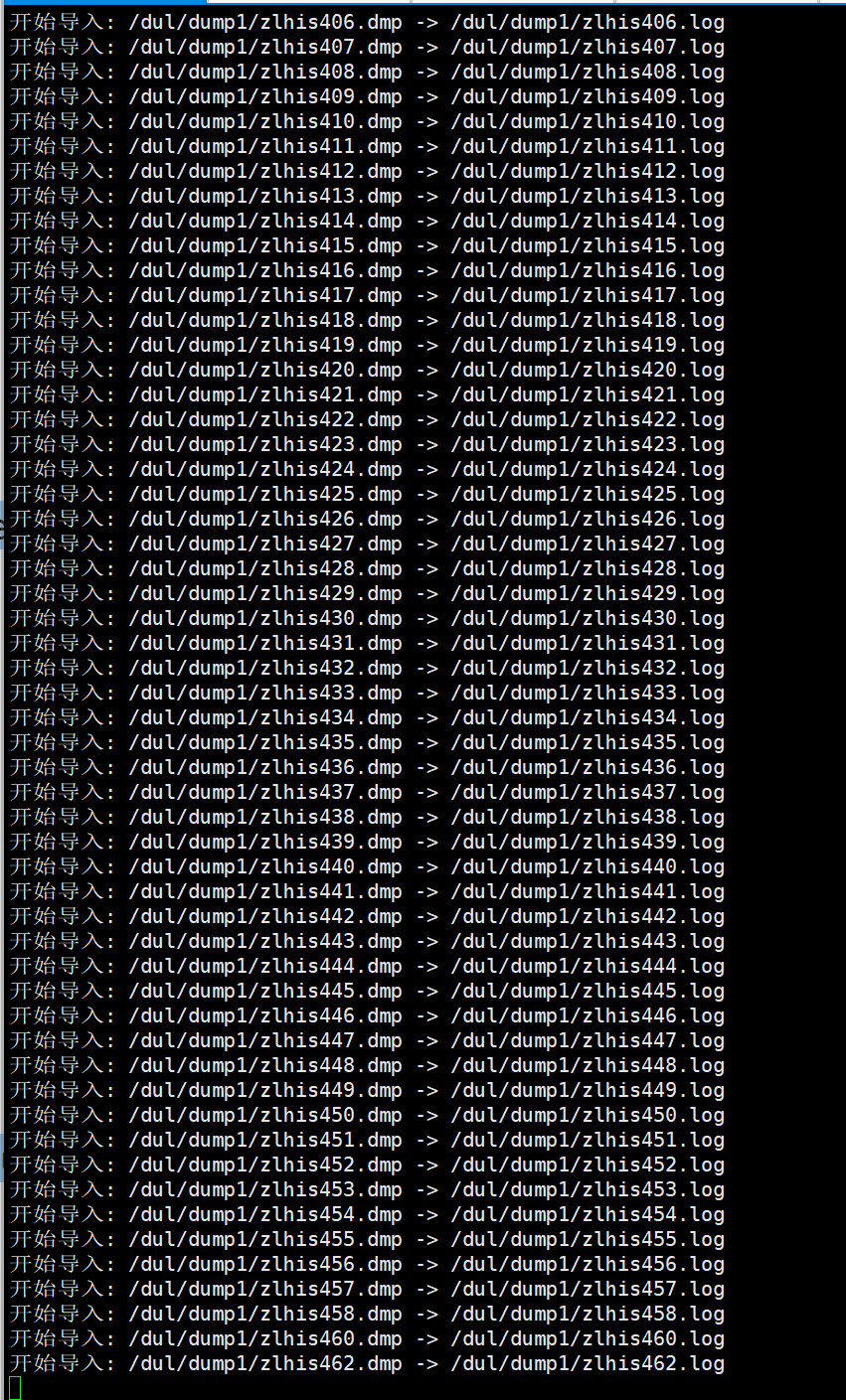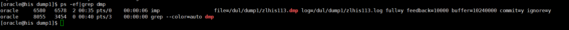 imp zlhis/his file=/dul/ZLHIS_CLOB_TEST.dmp log=/dul/ZLHIS_CLOB_TEST.log full=y feedback=10000 buffer=10240000 commit=y ignore=y
