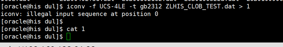 iconv -f UCS-4LE -t gb2312 ZLHIS_CLOB_TEST.dat > 1