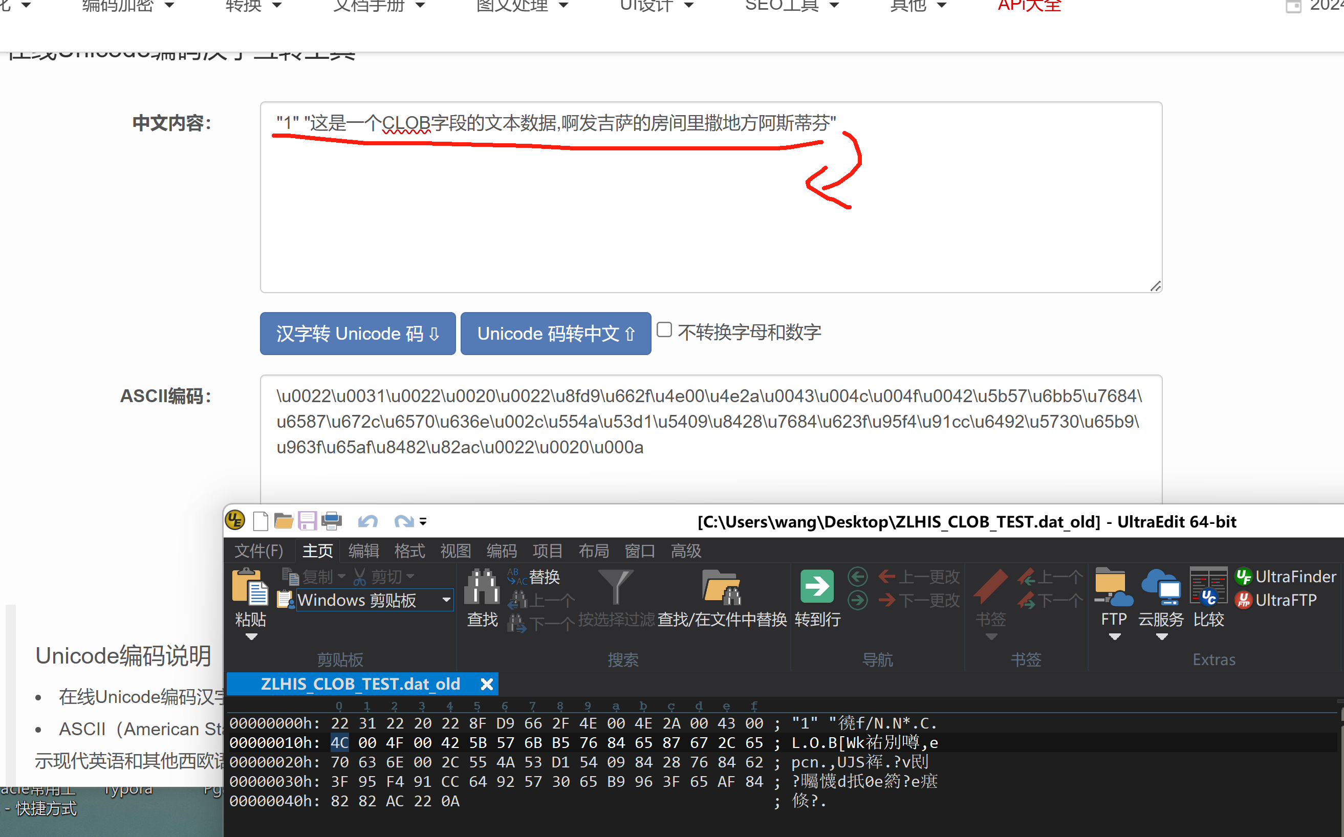 看了上面链接的文章,分析了数据,是unicode编码,用的"分割每列,空格一列后又是下一个字段,最后一个字段后是回车。通过iconv -f UCS-4LE -t gb2312 ZLHIS_CLOB_TEST.dat > 1还是不行。