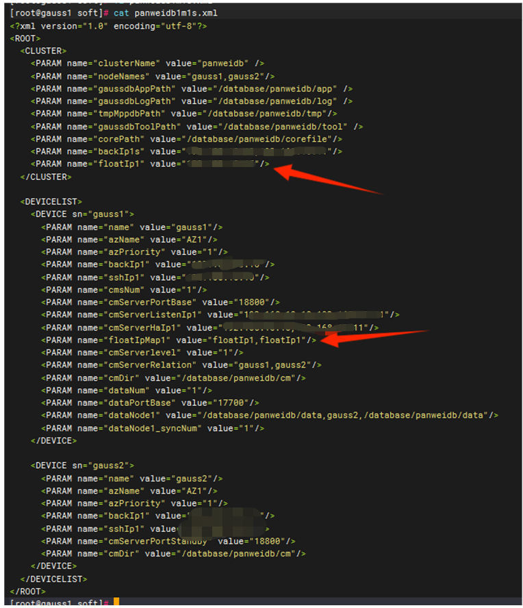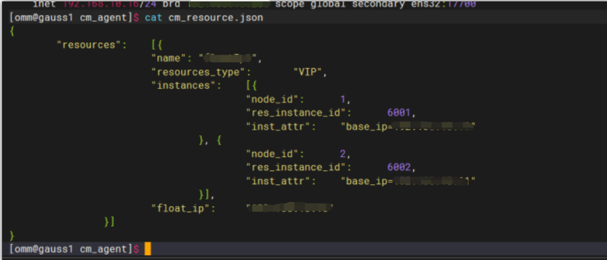 到/database/panweidb/cm/cm_agent下面查看cm_resource.json中的内容,将VIP将为X.X.X.X,即可。