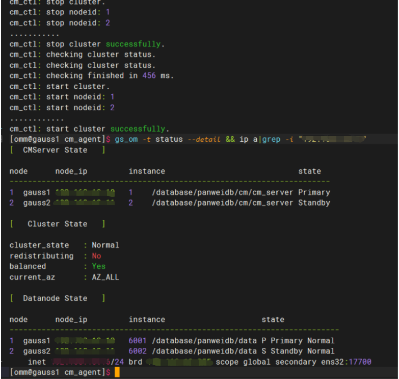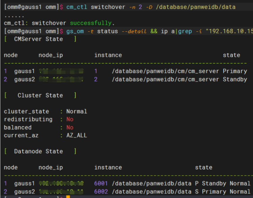 此时,双VIP已经部署完成,经过高可用测试后,两个VIP都可迁移和访问数据库。