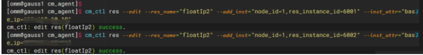 cm_ctl res --edit --res_name="floatIp2" --add_inst="node_id=2,res_instance_id=6002" --inst_attr="base_ip=X.X.X.X"