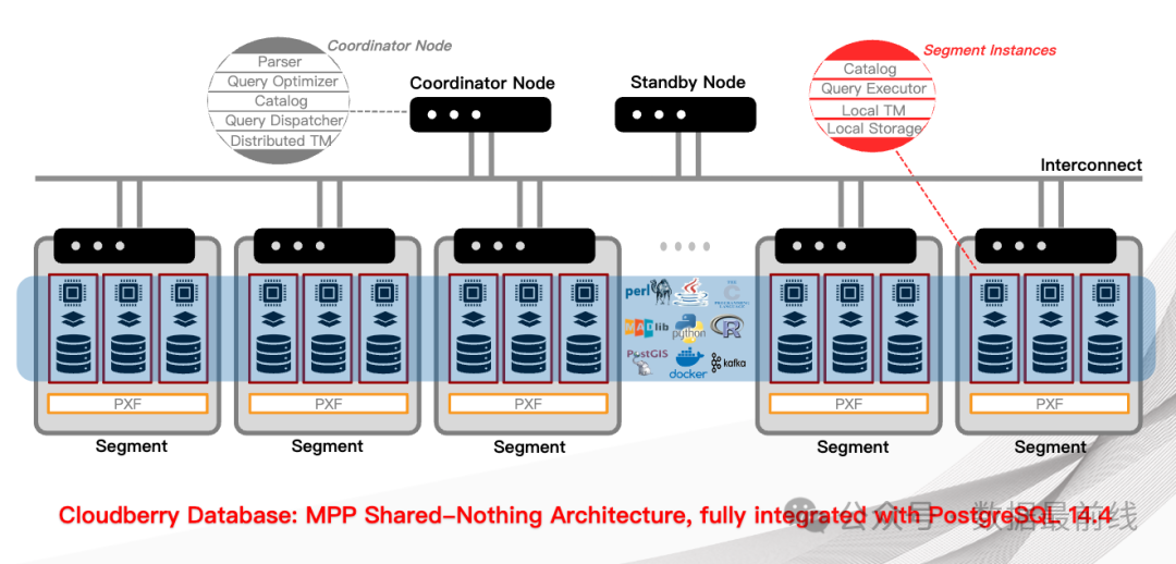 架构上,Cloudberry 和 Greenplum 是同源的,主要以下3个组成部分: