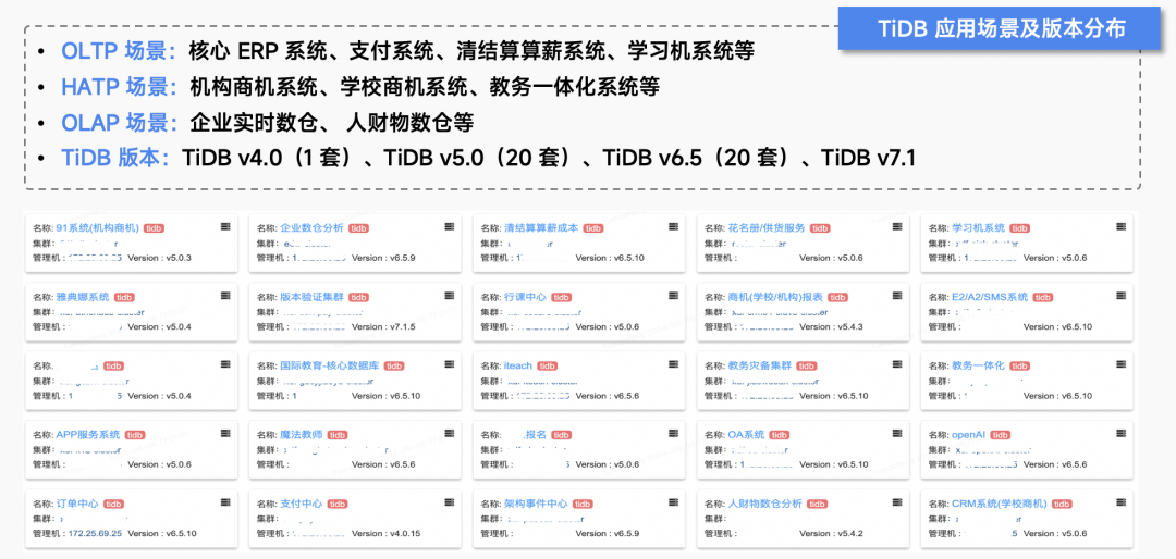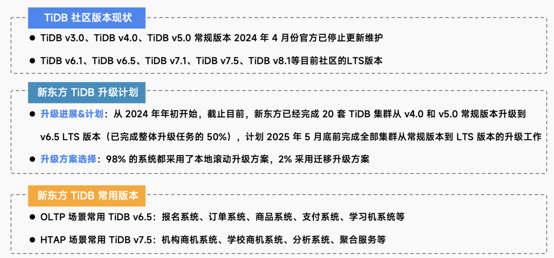 新东方 TiDB 应用场景及版本分布