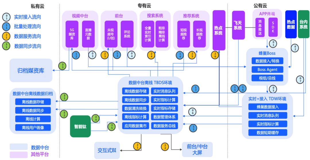 在建设过程中,腾讯云与央视频团队保持紧密合作,通过多阶段实施逐步完成平台的搭建与优化工作。首先,团队采用混合云架构,分别在公有云和专有云环境中部署系统,确保媒资内容在传输过程中的安全性和高效性。在此基础上,以TBDS为核心构建了数据存储与处理框架,对多源异构数据进行统一治理,并进一步优化了数据查询性能,为平台提供坚实的技术底座。