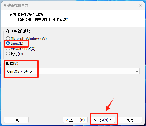 操作系统选择“Linux”,版本选择”Centos 7 64位“,点击下一步
