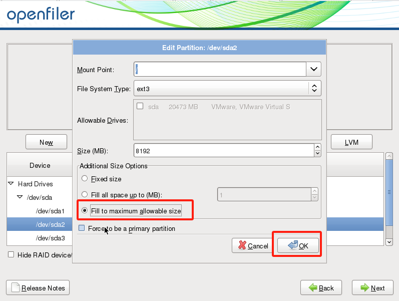 点击“/”选择“Fill to maximum…”(将剩余均分配给“/”),点击“ok”即可。