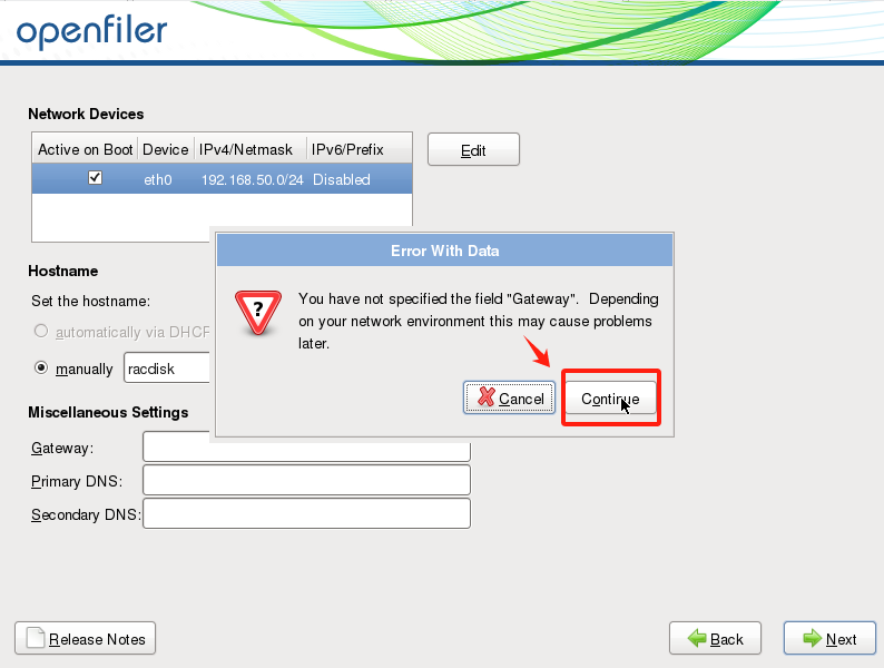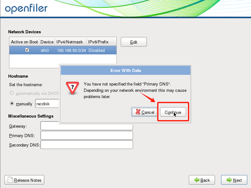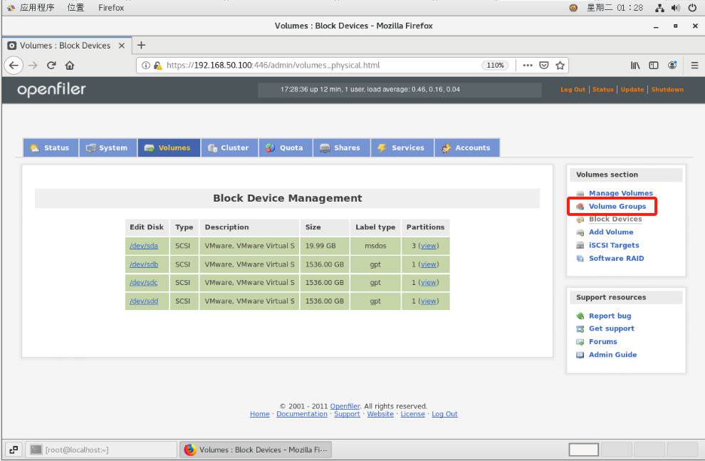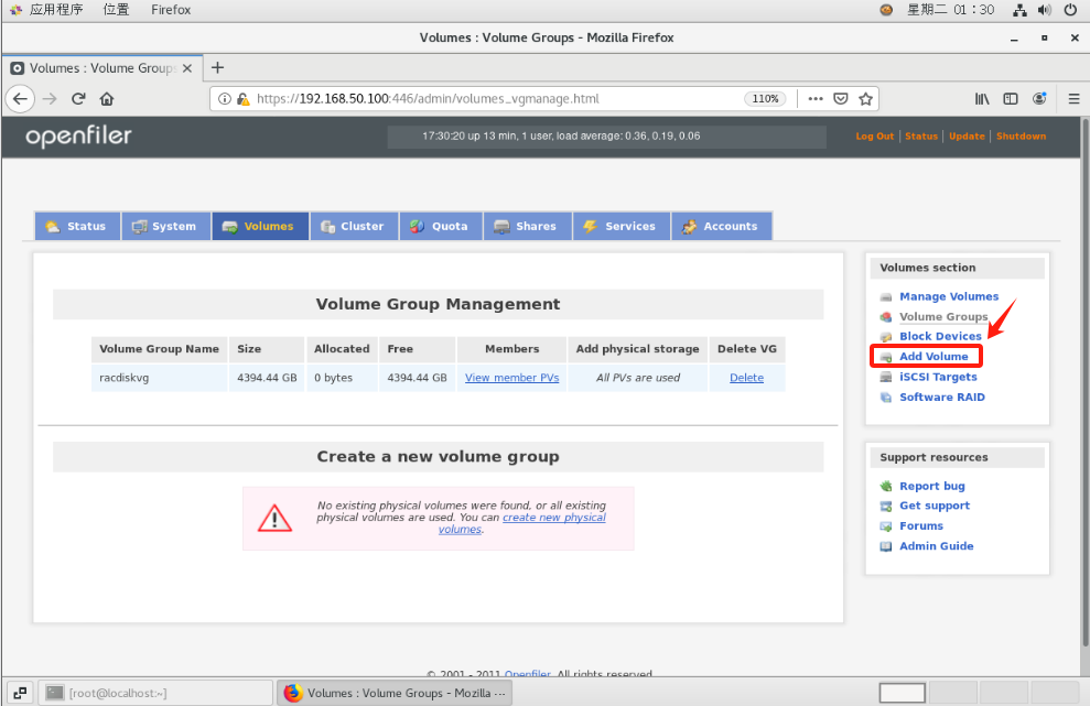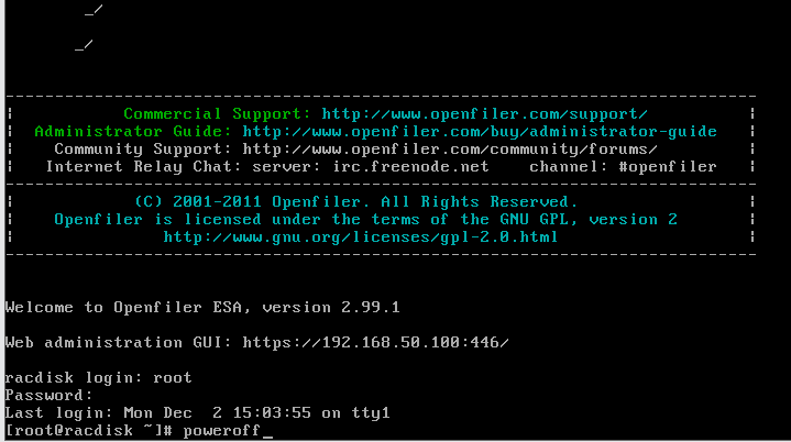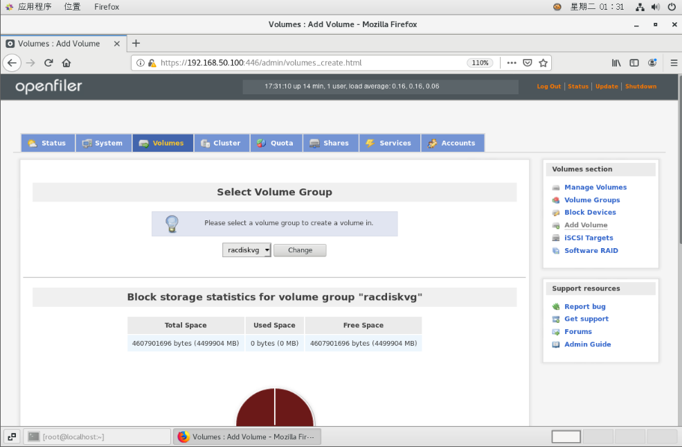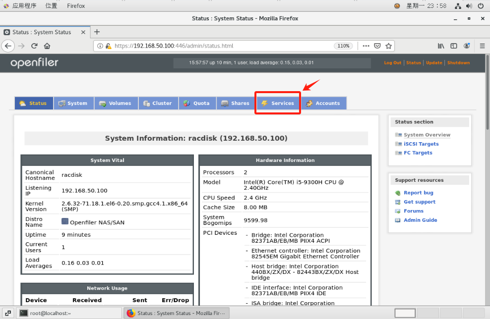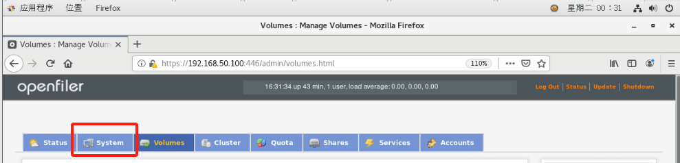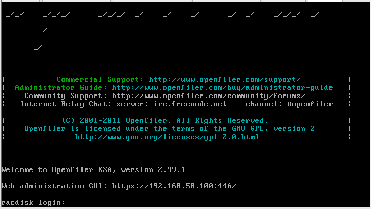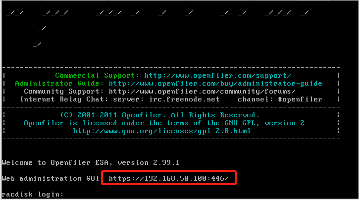 输入账号密码(默认账号为:openfiler 密码为:password)