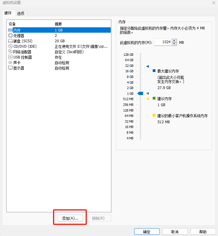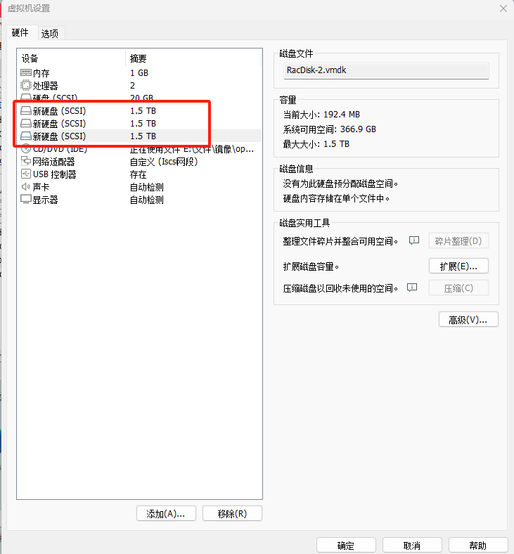 注意:参照上面方式同理再添加两块磁盘,最终配置如