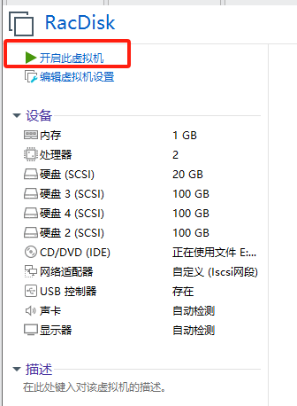 测试的虚机同样使用Openfiler虚机的“Iscsi网段”网卡。